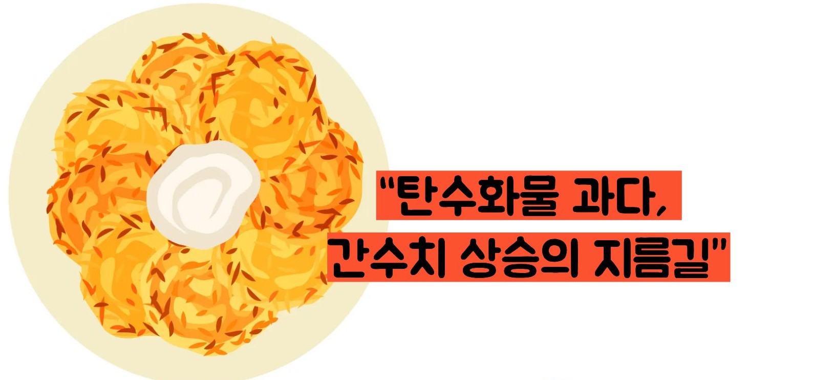 많은 사람들이 간수치 상승의 원인을 술로만 생각하지만, 실제로는 과도한 탄수화물 섭취와 인슐린 저항성이 주요 원인입니다. 밥, 빵, 면, 단 음료를 과하게 섭취하면 남은 에너지가 중성지방 형태로 간에 저장되며 지방간이 만들어집니다. 이 상태가 지속되면 간세포 염증이 생기고 ALT 수치가 먼저 올라갑니다. 간수치를 내리려면 술을 줄이는 것만큼 야식·당류·정제 탄수화물 감소가 중요합니다.