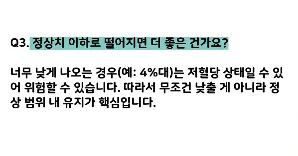 👉 무조건 그렇진 않습니다. 4%대처럼 지나치게 낮으면 저혈당 위험이 있어 오히려 위험할 수 있습니다.