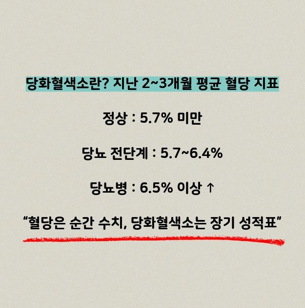 당화혈색소 정상수치는 단순히 당뇨병 유무를 확인하는 검사가 아니라, 지난 2~3개월 동안 내 몸이 혈당을 얼마나 안정적으로 관리했는지 보여주는 건강 지표입니다.
