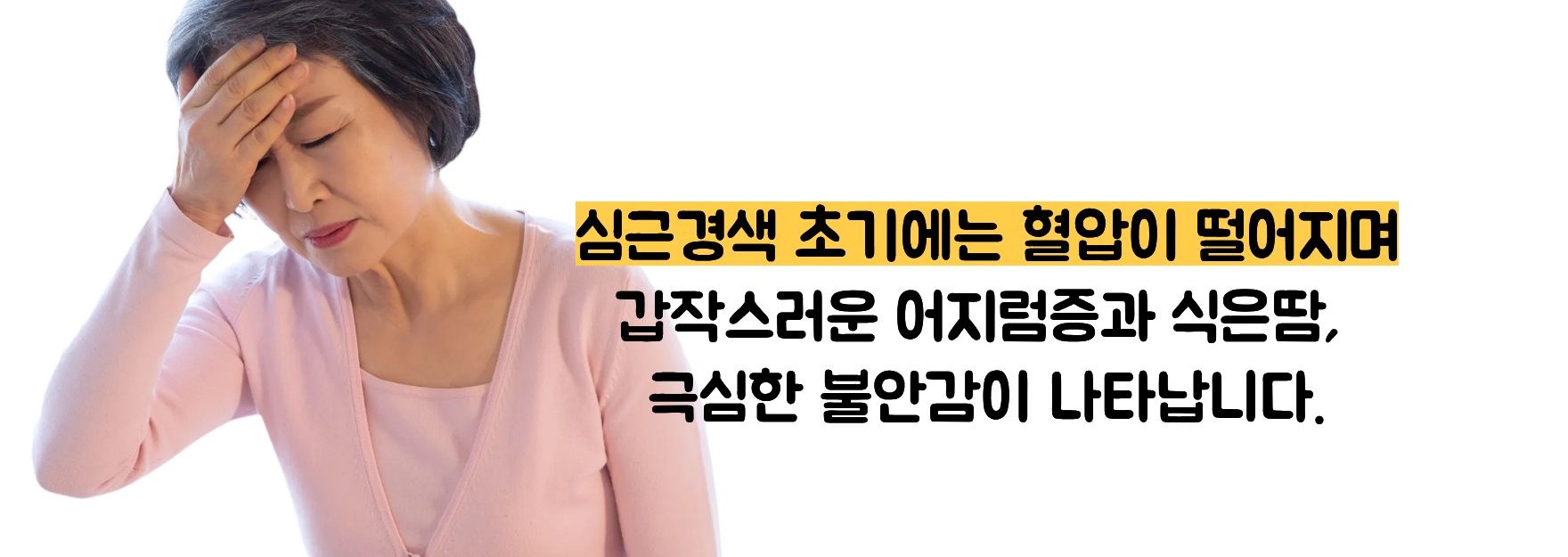 심근경색은 혈압이 급격히 떨어지면서 식은땀, 구역질, 어지럼증, 심한 불안감을 동반할 수 있습니다. 많은 환자가 “죽을 것 같은 불안감”을 경험하며, 이는 자율신경계가 위급 상황임을 알려주는 신호입니다. 이 증상이 30분 이상 지속되거나 반복될 경우, 지체 없이 119에 연락하고 응급실로 이동해야 합니다.