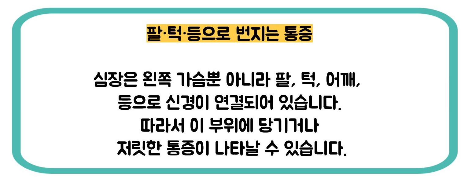 심근경색은 반드시 가슴 통증만 나타나는 것이 아닙니다. 턱, 어깨, 등, 왼쪽 팔, 심지어 명치 부근까지 통증이 퍼질 수 있습니다.